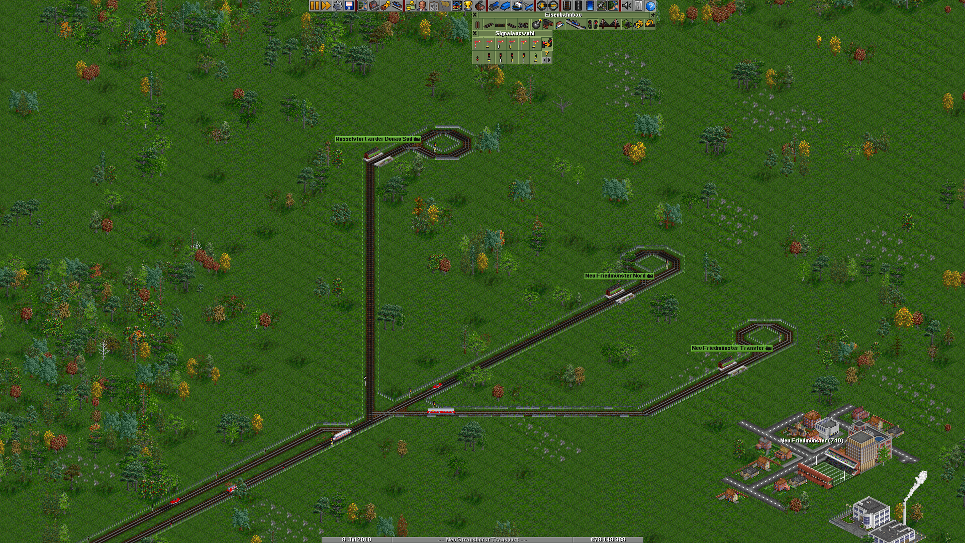 Ich bin aber absolut kein Profi und spiele meist nur zum Spass. Ich baue eigentlich immer zweigleisig. Denn wenn die Produktions steigt das mir schon oft passiert ist dann brauchst du auch mehr Züge wie du ja auch im Post über mir geschieben hast. Dort immer 2 Pfadsignale am Bahnhof und immer eins zur Einfahrt. Der Rest mit dann mit Blocksignalen aufgefüllt. Das klappt eigentlich am Anfang immer super. Doch wenn mehr Züge aufeinander treffen kommen die Probleme auch, dort habe ich dann auch immer zu kämpfen.