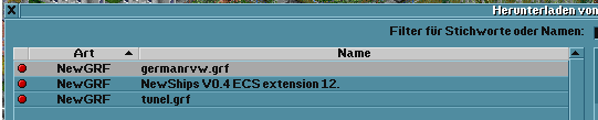 • in den baseset-Ordner gehören so Dinge wie OpenGFX, die TTD-Originalgrafiken, etc., sowie bei Patch-Packs etwaige Erweiterungen wie flat_blacktiles.grf, die keine eigenstehenden NewGRF sind, sondern fundamentale Bestandteile des Basisspiels (nicht deaktivierbar)